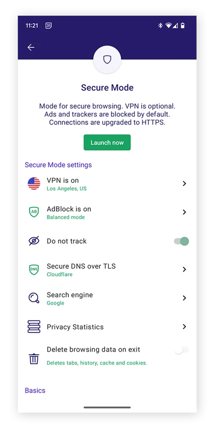 Avast Secure Browser for Android brings you native ad-blocking, anti-tracking, and advanced anti-fingerprinting technology to prevent advertisers from getting their hands on your personal information. Plus, enjoy full encryption of all your browsing data, bookmarks, downloads, IP address, DNS queries, and more. Start shielding your personal data today.